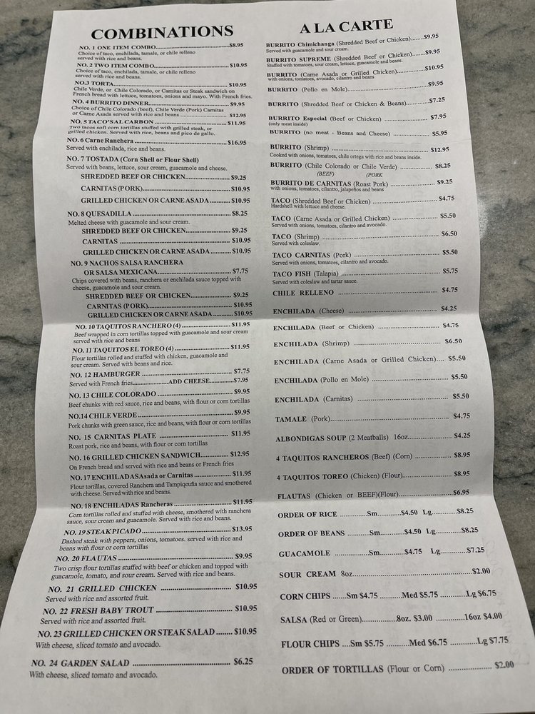 Nestled in Lancaster, CA, El Toreo Far West is a Mexican gem offering a plethora of delicious dishes. With a cozy neighborhood atmosphere, this family-friendly restaurant stands out for its flavor-packed cuisine and generous portions. Guests rave about the Burrito Carne Asada Dinner, Burrito Carnitas Dinner, and the popular Family Combo, which includes a variety of entrees and sides. The menu boasts options like Burrito Combinado, catering to both meat lovers and vegetarians. Reviews highlight the quick service, friendly staff, and the rustic decor that adds to the dining experience. The establishment's longevity of over 22 years across 4 locations speaks to its enduring appeal. Don't miss out on their Sunday brunch or the albóndiga soup for a satisfying meal worth revisiting.